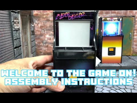 This set is held in a 1/12 scale Arcade machine with an LED backlight (Needs 2x AAA Batteries, not included) and six swappable film screens.